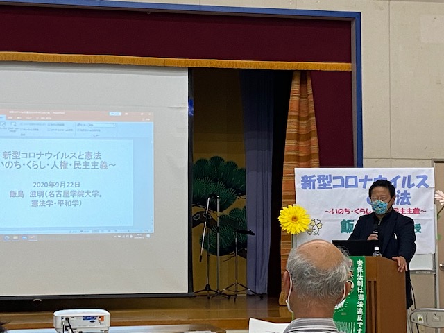 ゲストに、名古屋学院大学の飯島滋明先生をお招きし、「新型コロナウイルスと憲法 ~いのち・くらし・人権・民主主義~」というテーマでご講演を頂きました。