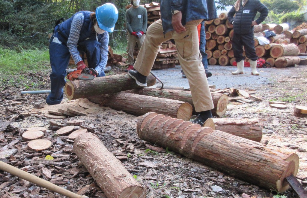 密集した木々を間伐することで土砂崩れなどの災害を防ぐこともでき、また、木そのものが、様々な用途をもった財産であり、薪などに加工して「山の財」として流通させます。