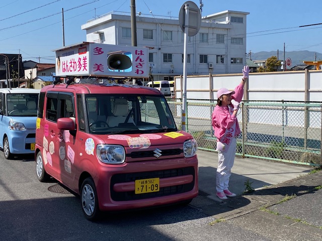 誰が落選してもおかしくない大激戦、明日はぜひ投票に出向いていただき、はんざわ多美を議会に戻していただけるようお願い申し上げます。