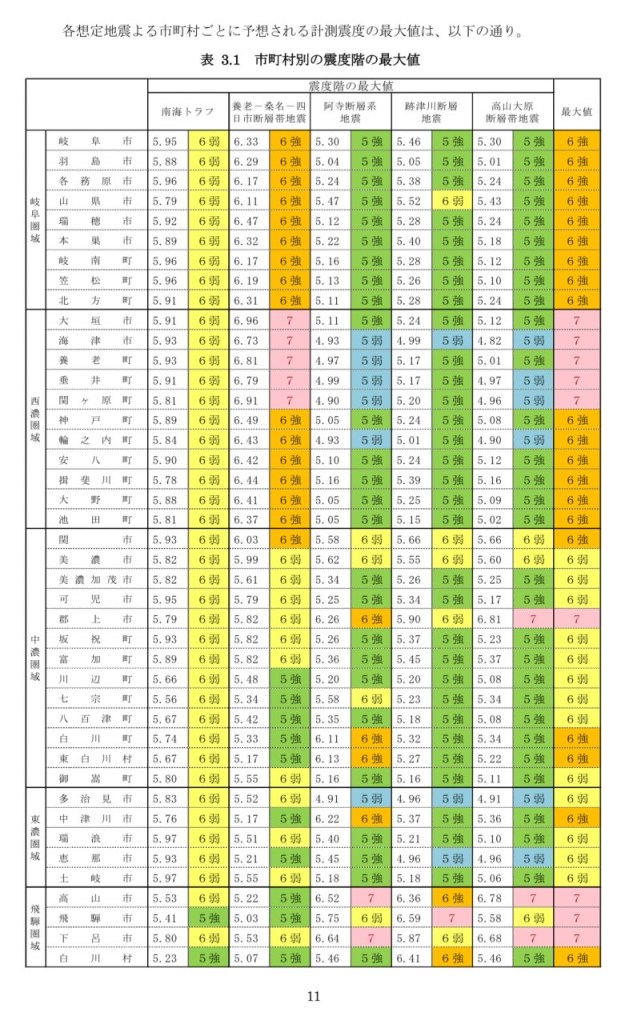 岐阜県内で最大震度7が予想される大地震は5つもあります。それらの大地震について県は調査結果を公表しています。中でも地震の規模が突出しているのが南海トラフ巨大地震で、広範囲に被害が及ぶ大震災になることが心配されています。