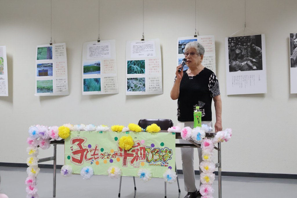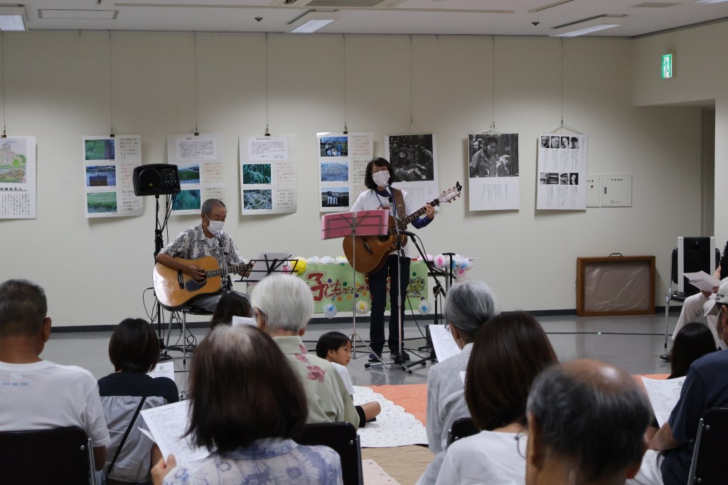 平和に対する想いを綴った歌をたくさん作ったフォークシンガーの故笠木透さんの薫陶を受けた伊舞木座さんのミニコンサートの後、二人の被爆体験者からの体験談をお聞きしました。