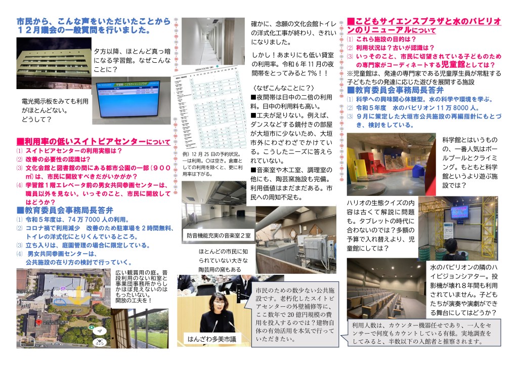 これまで、「暖簾に腕押し」感もありましたが昨年、1年で大垣市政も市民の声を意識し始めた変化を少しずつ感じています。
