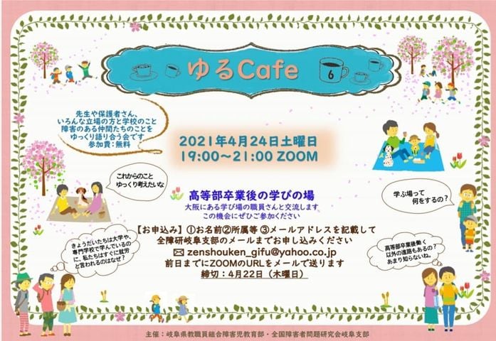 先日、全国障害者問題研究会岐阜支部・岐阜県教職員組合障害児教育部主催の「ゆるカフェ」にZOOM参加しました。