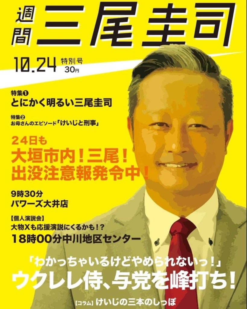 この間、岐阜2区候補者の三尾圭司さんと一緒に各地域を回っています。